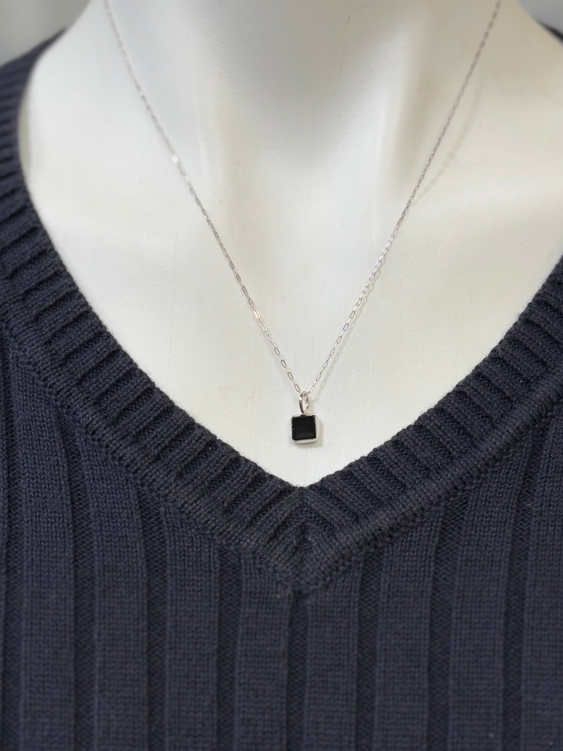 Dainty Black Onyx necklace with sterling silver 18” chain.