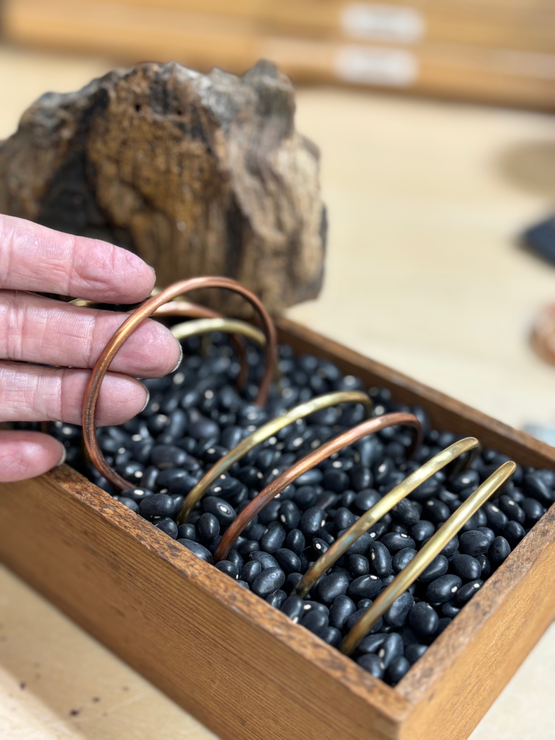 This beautifully hand-crafted bangle, made from copper and brass, offers a timeless accessory ideal for everyday elegance. Combine and mix these sophisticated pieces to create a look uniquely your own. Select your preferred style at checkout.