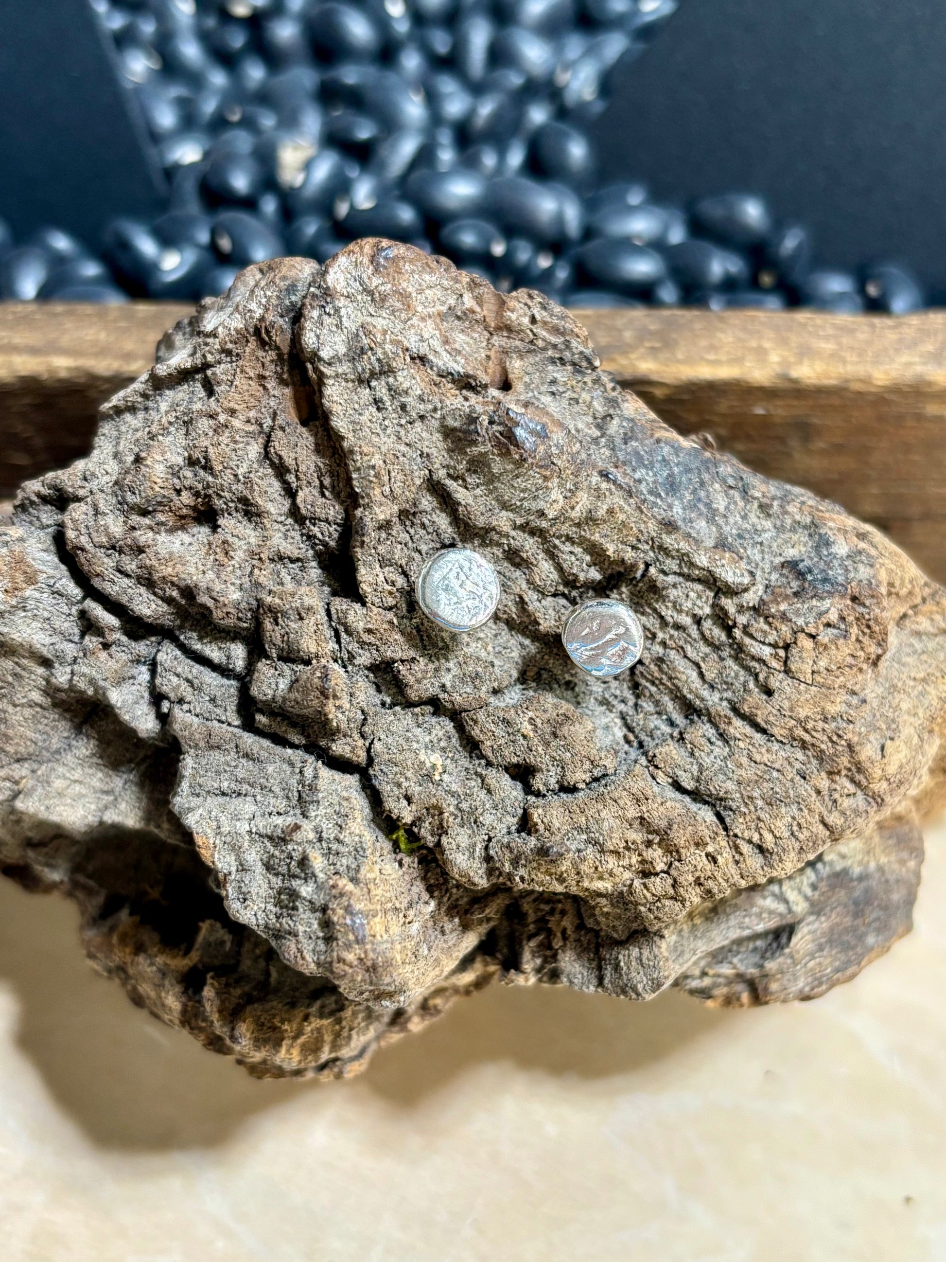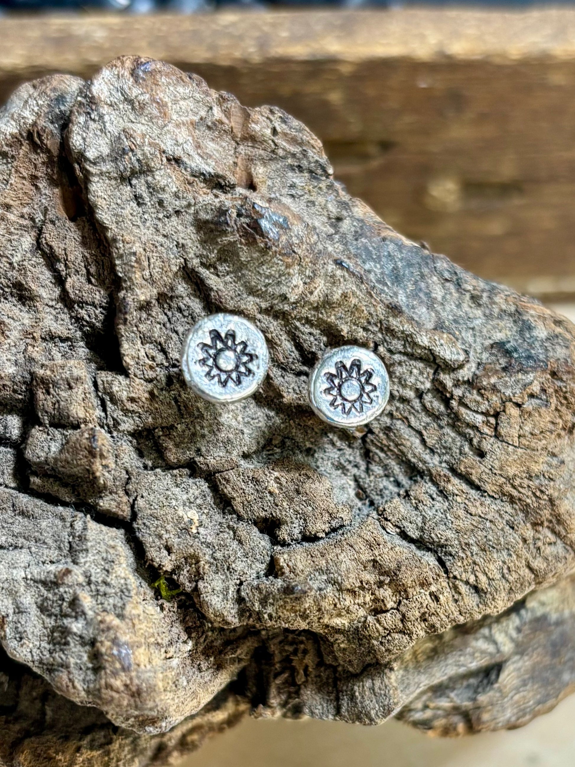 Handcrafted out of recycled sterling silver, these stamped studs are perfect for both everyday wear and gift giving. Choose from a variety of exquisite designs when checking out.
